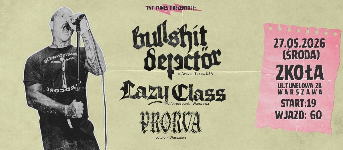 BULLSHIT DETECTOR - teksański cios prosto między oczy. Twardy oi zmiksowany z post punkowym mrokiem. Sami określają to co grają jako thugwave i trzeba przyznać, że pasuje to idealnie do ich muzyki. Grają zaledwie dwa koncerty w Polsce więc nie przegapcie tego!