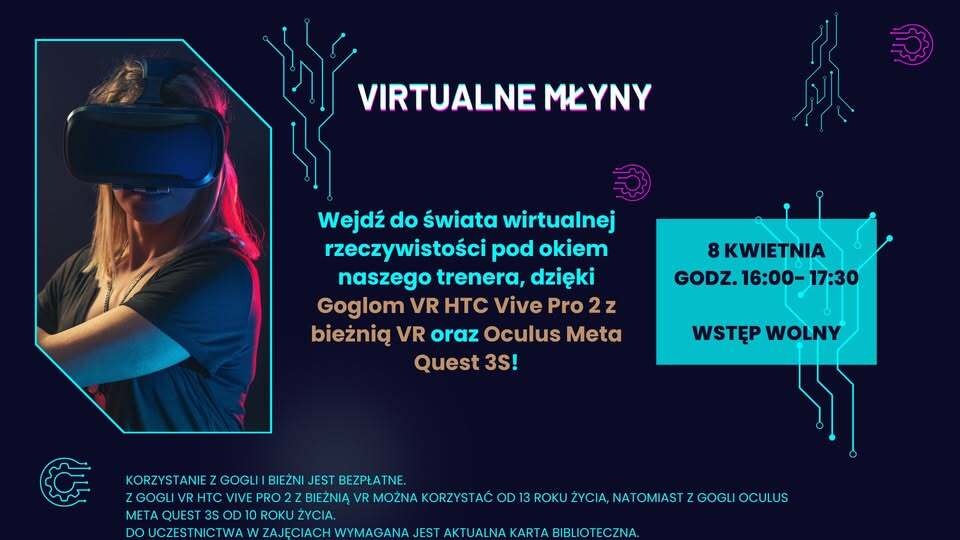 Z gogli VR mogą korzystać wyłącznie czytelnicy, którzy ukończyli 10. rok życia, natomiast z bieżni VR - 13. rok życia.